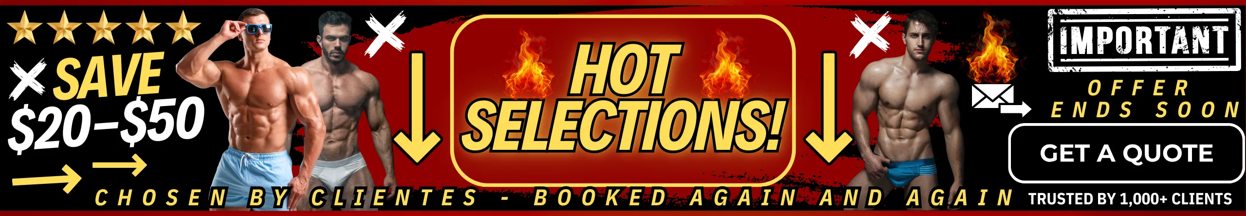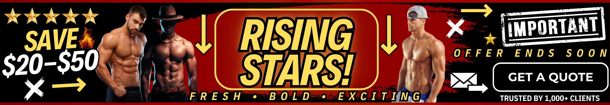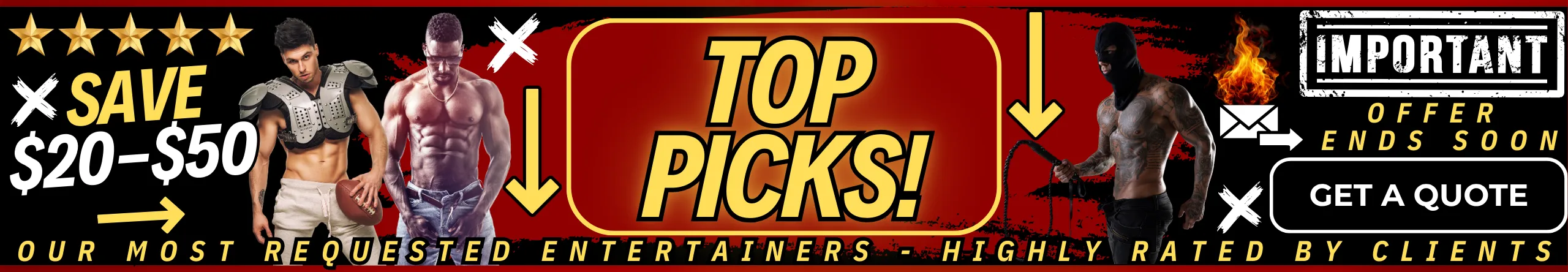 Pick your package, select your outfit themes, and choose your favorite entertainers. You can list your top choices and backup options, as well as ethnicity preferences, so we can match you with the best talent available.